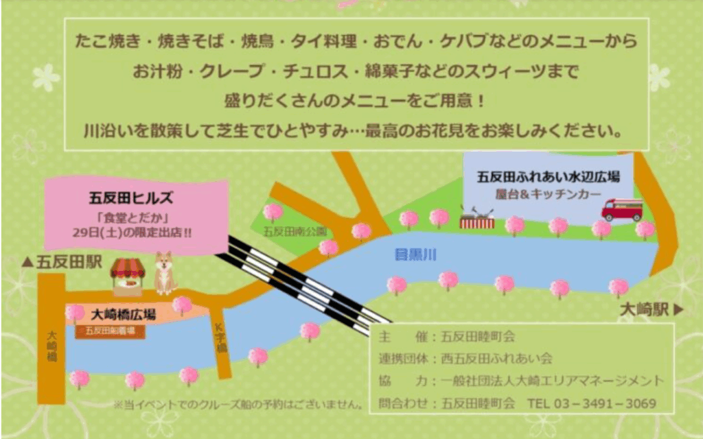 ・目黒川の桜祭り2026の屋台の場所は?