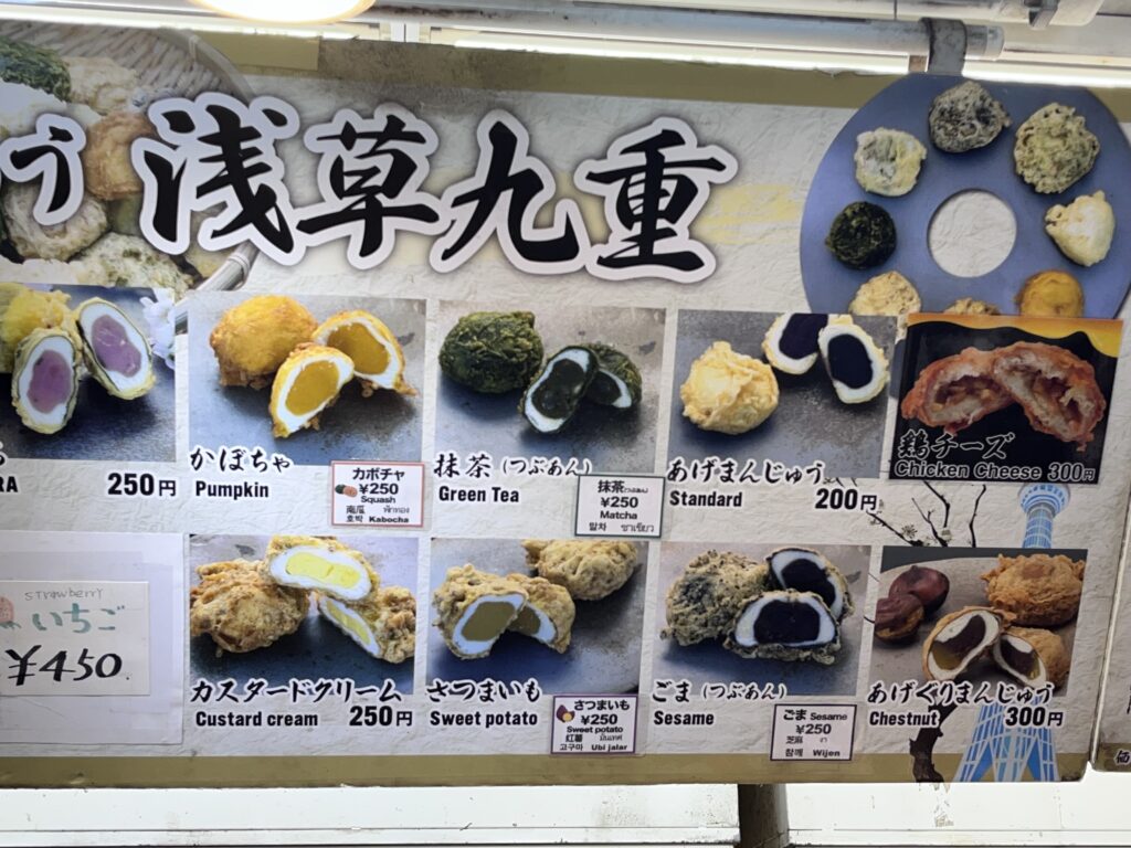 - 浅草寺の食べ歩きグルメのおすすめ①浅草九重②浅草きびだんご あずま➂壽々喜園④亀十⑤浅草花月堂