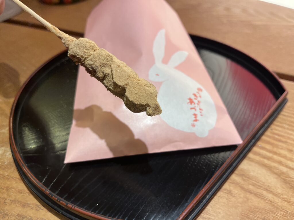 柔らかいお団子に香ばしいきな粉がたっぷりまぶしてあるきびだんごのお店。