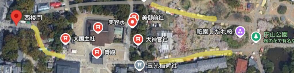 - 八坂神社の初詣2026の屋台の出店場所は、八坂神社の境内と円山公園